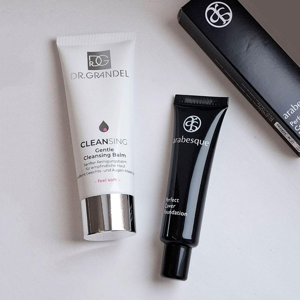 Das limiterte Set vereint gezielte Deckkraft mit sanfter Reinigung. Die Perfect Cover Foundation von arabesque sorgt für ein seidenmattes, langanhaltendes Finish. Hochpigmentiert kaschiert sie Unebenheiten und sorgt für einen ebenmäßigeren Teint. Der DR. GRANDEL Gentle Cleansing Balm reinigt abends sanft das Gesicht und entfernt selbst stark deckendes Make-up rückstandslos, ohne dabei auszutrocknen.