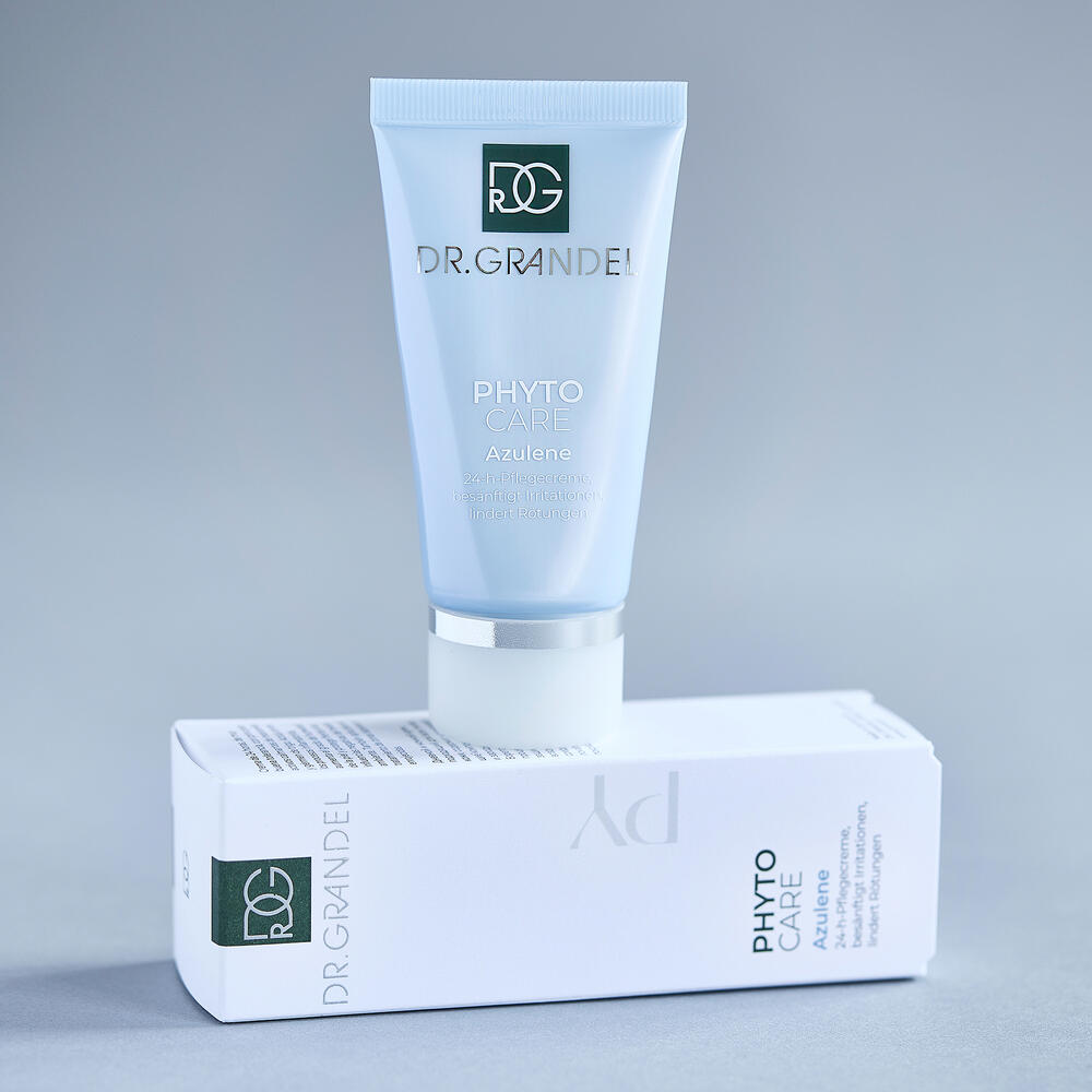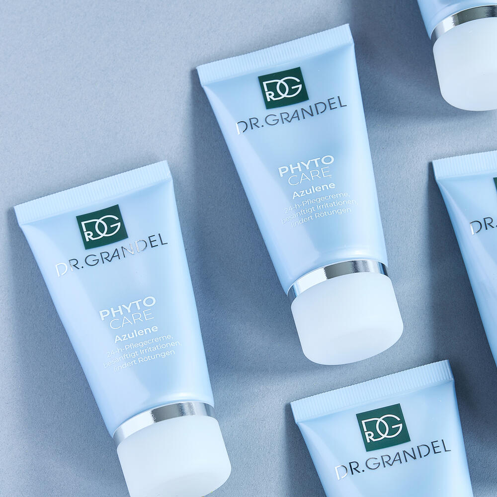 Bei der Azulen Creme von DR. GRANDEL handelt es sich um eine sehr gut verträgliche 24-Stunden-Pflege mit beruhigenden Wirkstoffen aus der Kamille und den Weizenkeimen.