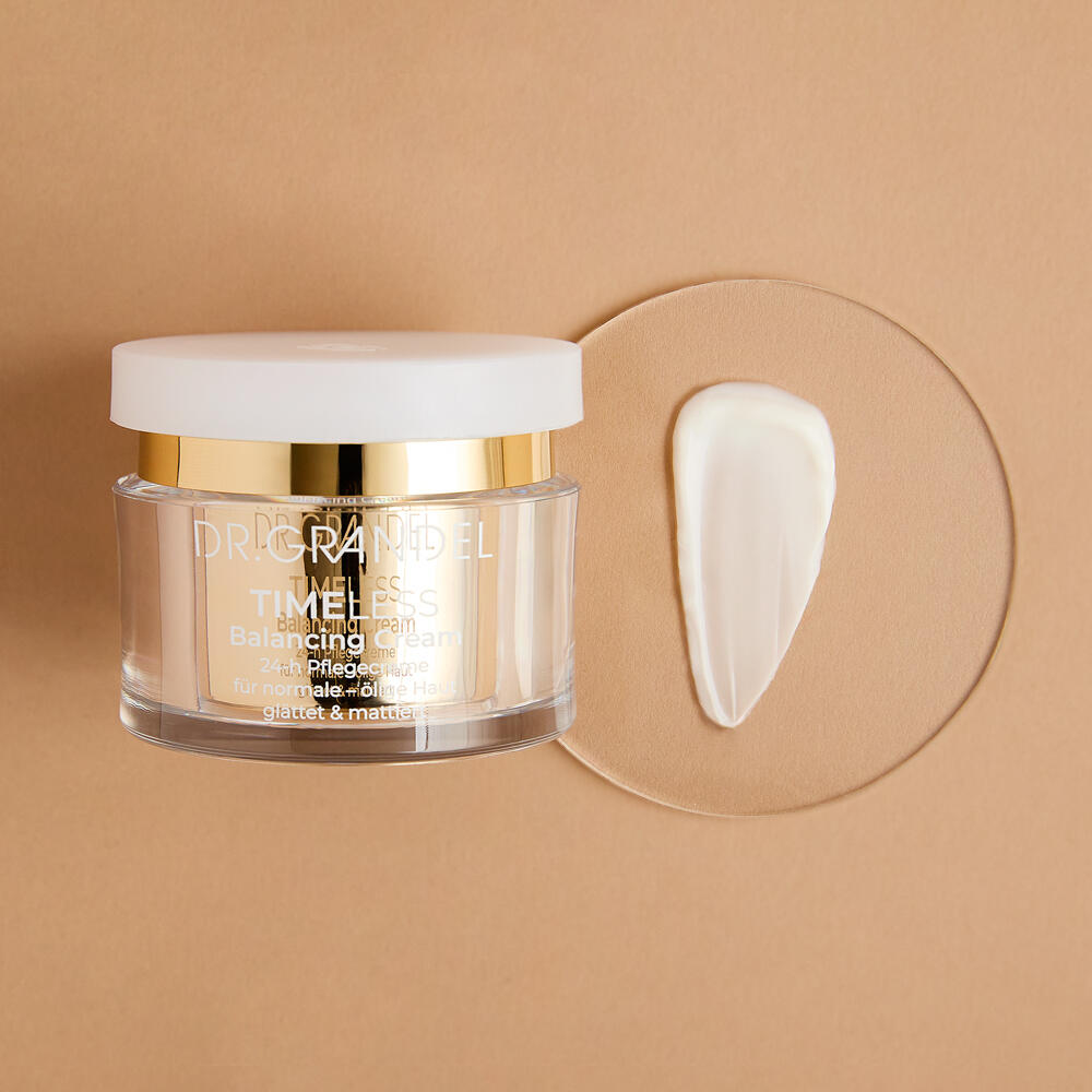 Die TIMELESS Balancing Cream von DR. GRANDEL ist für normale Haut, Mischhaut und ölige Haut geeignet. Die leichte Textur der Anti-Aging Gesichtscreme mattiert störenden Ölglanz, reduziert die Sebumproduktion der Haut und hinterlässt einen ausgeglichenen, jugendlichen Teint.Die Creme mit einer Wirkstoff-Kombination aus Buchenknospen Extrakt und Ceramiden glättet Linien und Fältchen und verbessert die Zellerneuerung. Für ein geglättetes, mattiertes Hautbild und zeitlos schöne Haut.