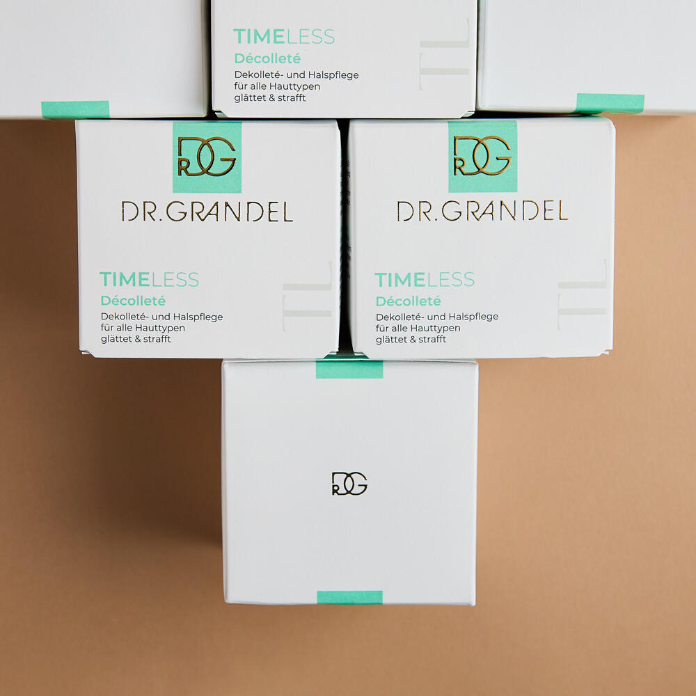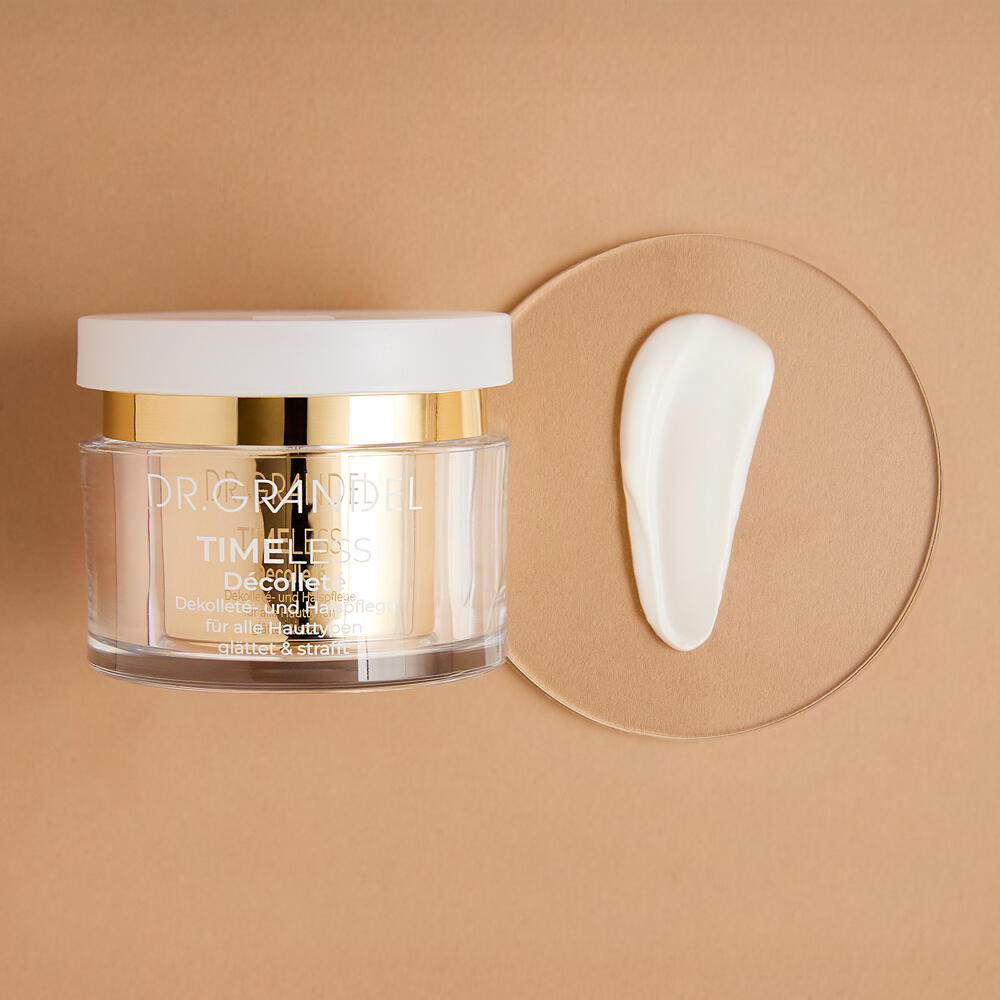 Die Anti-Aging Pflege für zeitlos schöne Haut. DR. GRANDEL TIMELESS Décolleté ist für jeden Hauttyp geeignet. Dank der leichten, nicht fettenden Textur zieht die Pflegecreme schnell ein und hinterlässt Ihrem Dekolleté- und Halsbereich ein gepflegtes Hautgefühl. Die Spezialpflege mit Myrrhe-Extrakt glättet Fältchen und bewahrt die Elastizität und Festigkeit der Haut. Für eine geglättete, gestraffte Dekolleté- und Halspartie.