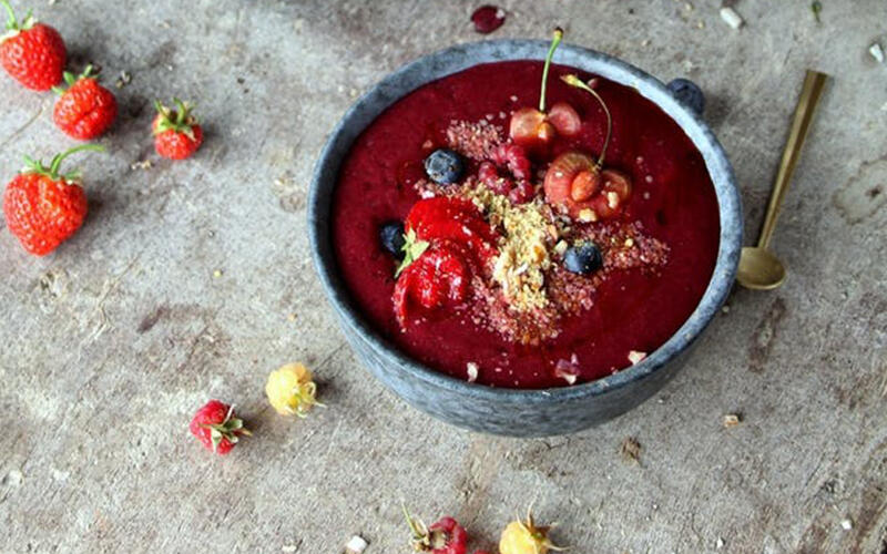 Smoothie. Kennen Sie und haben bestimmt schon mal einen probiert. Die Basis einer Smoothie Bowl: ein Mix aus Früchten und Gemüse. Das Ganze püriert zu einem cremigen Smoothie. On Top: frische Früchte der Saison, Nüsse, Keime, Samen oder Müsli. Trara: Fertig ist ein supergesundes Frühstück, das jeden Tag neu erfunden werden kann.
