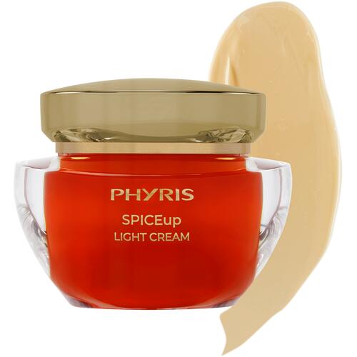 Moisture. Vitalization. Youthfulness - die geheimnisvolle Kraft der Gewürze! Die SPICEup LIGHT CREAM von PHYRIS spendet Feuchtigkeit und verleiht Ihrer Haut ein belebtes Gefühl. Die leichte Formulierung setzt auf kraftvolle Inhaltsstoffe, die an einen opulenten Gewürzbazar erinnern: Szechuan Pfeffer mindert Linien und Fältchen, wirkt gleichzeitig beruhigend und reizlindernd. Ein Extrakt des Currybaums steigert die Elastizität der Haut, schützt die elastinen Fasern und sorgt so für eine geminderte Faltentiefe und festere Gesichtskonturen. Zusätzlich ist die Creme mit Curcuma-Extrakt und wertvollem Schwarzkümmelöl angereichert. Würzige Duftnoten berühren alle Sinne und entführen Sie in eine mystische Welt. Für ein belebtes, ebenmäßiges Hautbild und eine jugendliche Ausstrahlung.