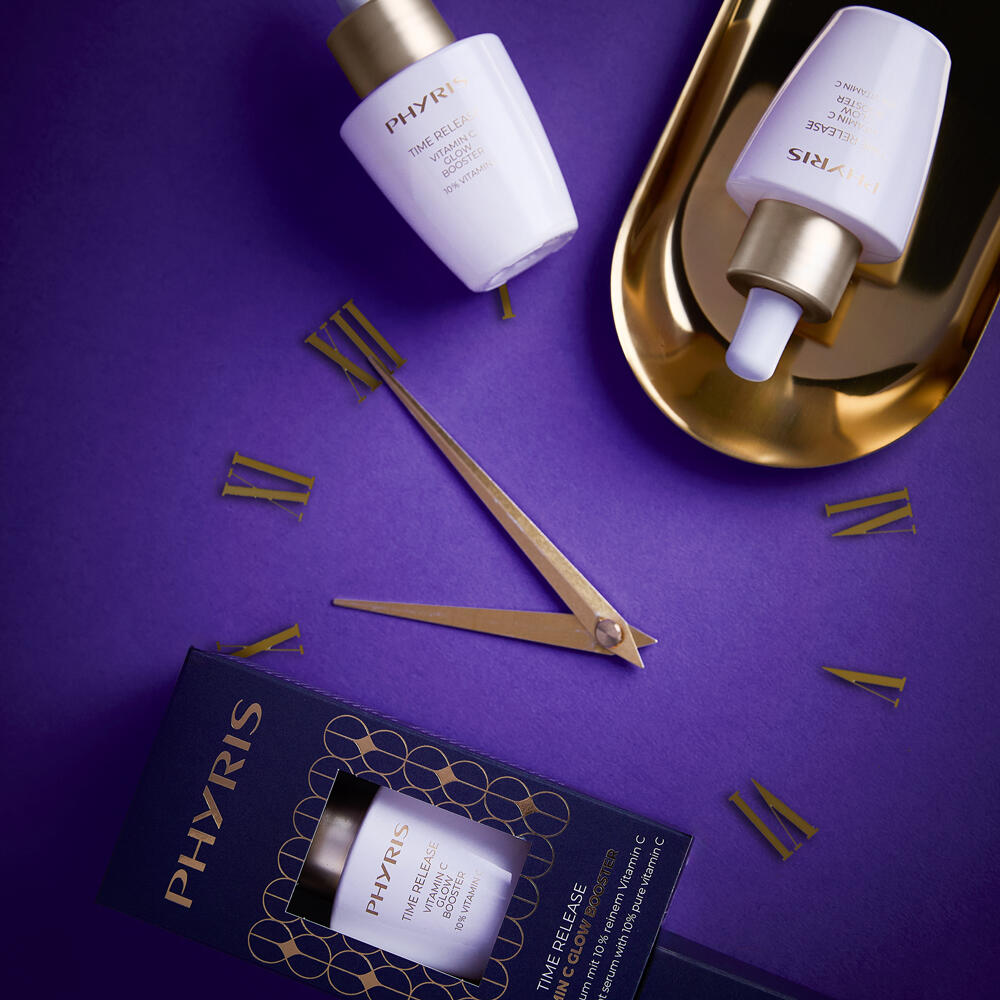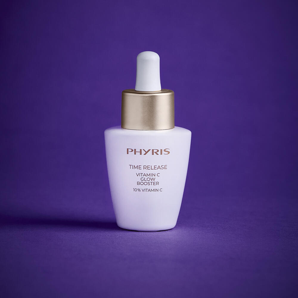 Das seidig-zarte PHYRIS TIME RELEASE Vitamin C Glow Booster Wirkstoffserum mit 10% reinem Vitamin C schenkt der Haut sofortigen Glow. Das Vitamin C Serum gleicht den Hautton aus und perfektioniert den Teint. Enthaltenes liposomal verkapseltes Vitamin C fördert langfristig die Kollagensynthese und minimiert feine Linien und Fältchen im Gesicht.